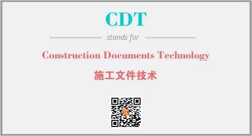 英文缩略词“CDT”经常作为“Construction Documents Technology”的英文缩写来使用,中文表示:“施工文件技术”。本文将详细介绍英文缩写词CDT所代表英文单词,其对应的中文拼音、详细解释以及在英语中的流行度。此外,还有关于缩略词CDT的分类、应用领域及相关应用示例等。