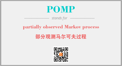 上述内容是“partially observed Markov process”作为“POMP”的缩写,解释为“部分观测马尔可夫过程”时的信息,以及英文缩略词POMP所代表的英文单词,其对应的中文拼音、详细解释以及在英文中的流行度和相关分类、应用领域及应用示例等。