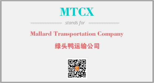 上述内容是“Mallard Transportation Company”作为“MTCX”的缩写,解释为“绿头鸭运输公司”时的信息,以及英文缩略词MTCX所代表的英文单词,其对应的中文拼音、详细解释以及在英文中的流行度和相关分类、应用领域及应用示例等。