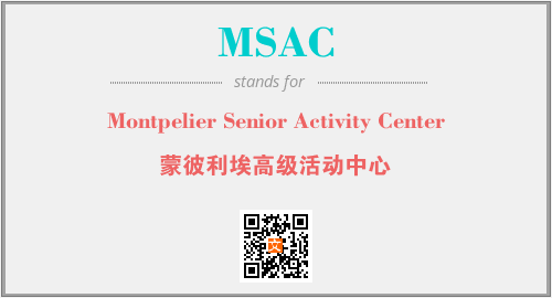 上述内容是“Montpelier Senior Activity Center”作为“MSAC”的缩写,解释为“蒙彼利埃高级活动中心”时的信息,以及英文缩略词MSAC所代表的英文单词,其对应的中文拼音、详细解释以及在英文中的流行度和相关分类、应用领域及应用示例等。