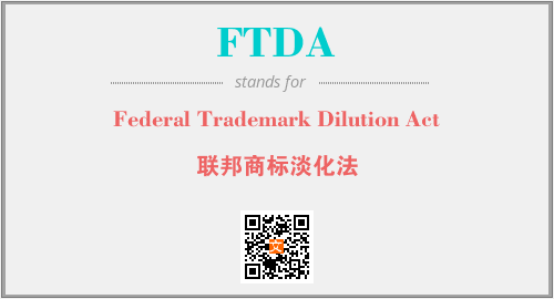 上述内容是“Federal Trademark Dilution Act”作为“FTDA”的缩写,解释为“联邦商标淡化法”时的信息,以及英文缩略词FTDA所代表的英文单词,其对应的中文拼音、详细解释以及在英文中的流行度和相关分类、应用领域及应用示例等。