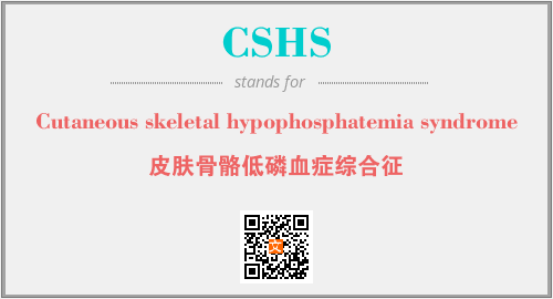 上述内容是“Cutaneous skeletal hypophosphatemia syndrome”作为“CSHS”的缩写,解释为“皮肤骨骼低磷血症综合征”时的信息,以及英文缩略词CSHS所代表的英文单词,其对应的中文拼音、详细解释以及在英文中的流行度和相关分类、应用领域及应用示例等。