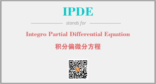 英文缩略词“IPDE”经常作为“Integro Partial Differential Equation”的英文缩写来使用,中文表示:“积分偏微分方程”。本文将详细介绍英文缩写词IPDE所代表英文单词,其对应的中文拼音、详细解释以及在英语中的流行度。此外,还有关于缩略词IPDE的分类、应用领域及相关应用示例等。