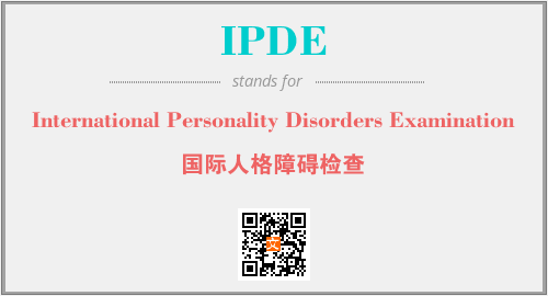 以上为International Personality Disorders Examination英文缩略词IPDE的中文解释,以及该英文缩写在英语的流行度、分类和应用领域方面的信息。