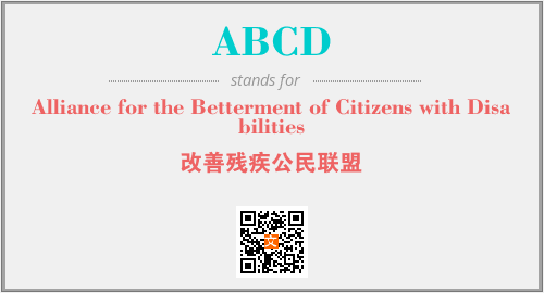 上述内容是“Alliance for the Betterment of Citizens with Disabilities”作为“ABCD”的缩写,解释为“改善残疾公民联盟”时的信息,以及英文缩略词ABCD所代表的英文单词,其对应的中文拼音、详细解释以及在英文中的流行度和相关分类、应用领域及应用示例等。