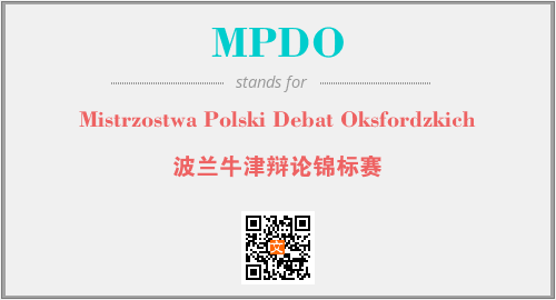 以上为Mistrzostwa Polski Debat Oksfordzkich英文缩略词MPDO的中文解释,以及该英文缩写在英语的流行度、分类和应用领域方面的信息。