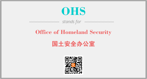 英文缩略词“OHS”经常作为“Office of Homeland Security”的英文缩写来使用,中文表示:“国土安全办公室”。本文将详细介绍英文缩写词OHS所代表英文单词,其对应的中文拼音、详细解释以及在英语中的流行度。此外,还有关于缩略词OHS的分类、应用领域及相关应用示例等。