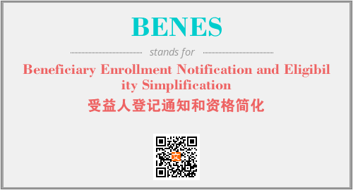 上述内容是“Beneficiary Enrollment Notification and Eligibility Simplification”作为“BENES”的缩写,解释为“受益人登记通知和资格简化”时的信息,以及英文缩略词BENES所代表的英文单词,其对应的中文拼音、详细解释以及在英文中的流行度和相关分类、应用领域及应用示例等。