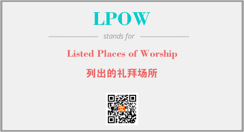 以上为Listed Places of Worship英文缩略词LPOW的中文解释,以及该英文缩写在英语的流行度、分类和应用领域方面的信息。