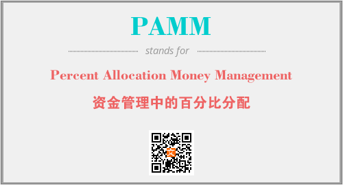 以上为Percent Allocation Money Management英文缩略词PAMM的中文解释,以及该英文缩写在英语的流行度、分类和应用领域方面的信息。