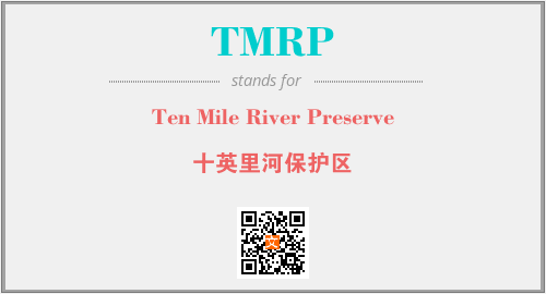 上述内容是“Ten Mile River Preserve”作为“TMRP”的缩写,解释为“十英里河保护区”时的信息,以及英文缩略词TMRP所代表的英文单词,其对应的中文拼音、详细解释以及在英文中的流行度和相关分类、应用领域及应用示例等。