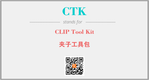英文缩略词“CTK”经常作为“CLIP Tool Kit”的英文缩写来使用,中文表示:“夹子工具包”。本文将详细介绍英文缩写词CTK所代表英文单词,其对应的中文拼音、详细解释以及在英语中的流行度。此外,还有关于缩略词CTK的分类、应用领域及相关应用示例等。