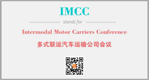 英文缩略词“IMCC”经常作为“Intermodal Motor Carriers Conference”的英文缩写来使用,中文表示:“多式联运汽车运输公司会议”。本文将详细介绍英文缩写词IMCC所代表英文单词,其对应的中文拼音、详细解释以及在英语中的流行度。此外,还有关于缩略词IMCC的分类、应用领域及相关应用示例等。