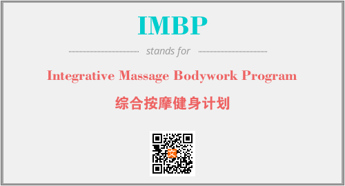 英文缩略词“IMBP”经常作为“Integrative Massage Bodywork Program”的英文缩写来使用,中文表示:“综合按摩健身计划”。本文将详细介绍英文缩写词IMBP所代表英文单词,其对应的中文拼音、详细解释以及在英语中的流行度。此外,还有关于缩略词IMBP的分类、应用领域及相关应用示例等。