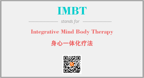 英文缩略词“IMBT”经常作为“Integrative Mind Body Therapy”的英文缩写来使用,中文表示:“身心一体化疗法”。本文将详细介绍英文缩写词IMBT所代表英文单词,其对应的中文拼音、详细解释以及在英语中的流行度。此外,还有关于缩略词IMBT的分类、应用领域及相关应用示例等。