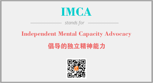 以上为Independent Mental Capacity Advocacy英文缩略词IMCA的中文解释,以及该英文缩写在英语的流行度、分类和应用领域方面的信息。