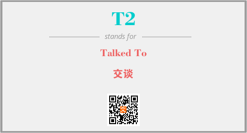 上述内容是“Talked To”作为“T2”的缩写,解释为“交谈”时的信息,以及英文缩略词T2所代表的英文单词,其对应的中文拼音、详细解释以及在英文中的流行度和相关分类、应用领域及应用示例等。