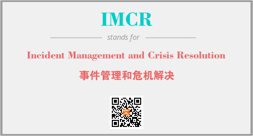 上述内容是“Incident Management and Crisis Resolution”作为“IMCR”的缩写,解释为“事件管理和危机解决”时的信息,以及英文缩略词IMCR所代表的英文单词,其对应的中文拼音、详细解释以及在英文中的流行度和相关分类、应用领域及应用示例等。