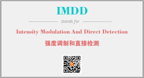 上述内容是“Intensity Modulation And Direct Detection”作为“IMDD”的缩写,解释为“强度调制和直接检测”时的信息,以及英文缩略词IMDD所代表的英文单词,其对应的中文拼音、详细解释以及在英文中的流行度和相关分类、应用领域及应用示例等。