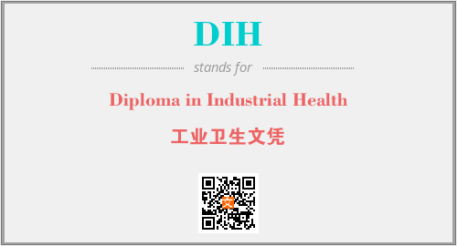 英文缩略词“DIH”经常作为“Diploma in Industrial Health”的英文缩写来使用,中文表示:“工业卫生文凭”。本文将详细介绍英文缩写词DIH所代表英文单词,其对应的中文拼音、详细解释以及在英语中的流行度。此外,还有关于缩略词DIH的分类、应用领域及相关应用示例等。