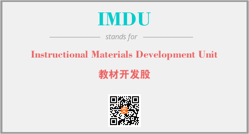 上述内容是“Instructional Materials Development Unit”作为“IMDU”的缩写,解释为“教材开发股”时的信息,以及英文缩略词IMDU所代表的英文单词,其对应的中文拼音、详细解释以及在英文中的流行度和相关分类、应用领域及应用示例等。