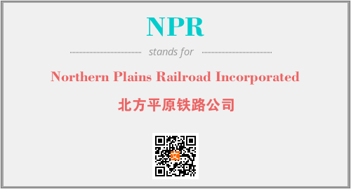 上述内容是“Northern Plains Railroad Incorporated”作为“NPR”的缩写,解释为“北方平原铁路公司”时的信息,以及英文缩略词NPR所代表的英文单词,其对应的中文拼音、详细解释以及在英文中的流行度和相关分类、应用领域及应用示例等。