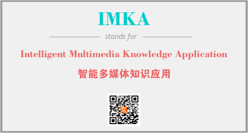 上述内容是“Intelligent Multimedia Knowledge Application”作为“IMKA”的缩写,解释为“智能多媒体知识应用”时的信息,以及英文缩略词IMKA所代表的英文单词,其对应的中文拼音、详细解释以及在英文中的流行度和相关分类、应用领域及应用示例等。