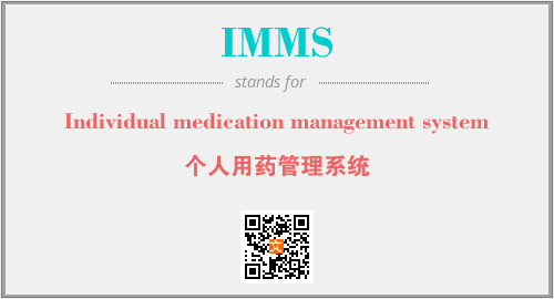 英文缩略词“IMMS”经常作为“Individual medication management system”的英文缩写来使用,中文表示:“个人用药管理系统”。本文将详细介绍英文缩写词IMMS所代表英文单词,其对应的中文拼音、详细解释以及在英语中的流行度。此外,还有关于缩略词IMMS的分类、应用领域及相关应用示例等。
