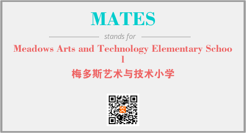 上述内容是“Meadows Arts and Technology Elementary School”作为“MATES”的缩写,解释为“梅多斯艺术与技术小学”时的信息,以及英文缩略词MATES所代表的英文单词,其对应的中文拼音、详细解释以及在英文中的流行度和相关分类、应用领域及应用示例等。