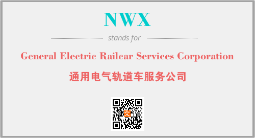 上述内容是“General Electric Railcar Services Corporation”作为“NWX”的缩写,解释为“通用电气轨道车服务公司”时的信息,以及英文缩略词NWX所代表的英文单词,其对应的中文拼音、详细解释以及在英文中的流行度和相关分类、应用领域及应用示例等。