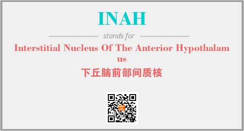 上述内容是“Interstitial Nucleus Of The Anterior Hypothalamus”作为“INAH”的缩写,解释为“下丘脑前部间质核”时的信息,以及英文缩略词INAH所代表的英文单词,其对应的中文拼音、详细解释以及在英文中的流行度和相关分类、应用领域及应用示例等。
