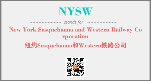 以上为New York Susquehanna and Western Railway Corporation英文缩略词NYSW的中文解释,以及该英文缩写在英语的流行度、分类和应用领域方面的信息。