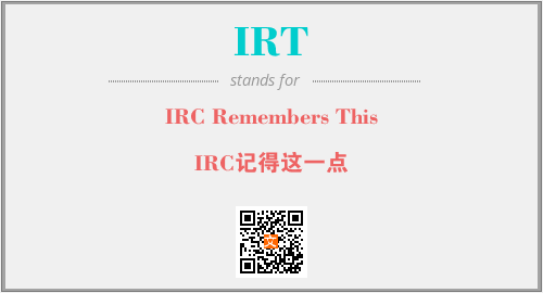 英文缩略词“IRT”经常作为“IRC Remembers This”的英文缩写来使用,中文表示:“IRC记得这一点”。本文将详细介绍英文缩写词IRT所代表英文单词,其对应的中文拼音、详细解释以及在英语中的流行度。此外,还有关于缩略词IRT的分类、应用领域及相关应用示例等。