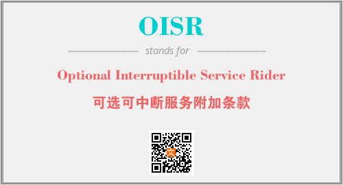 上述内容是“Optional Interruptible Service Rider”作为“OISR”的缩写,解释为“可选可中断服务附加条款”时的信息,以及英文缩略词OISR所代表的英文单词,其对应的中文拼音、详细解释以及在英文中的流行度和相关分类、应用领域及应用示例等。
