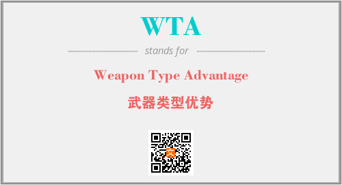 上述内容是“Weapon Type Advantage”作为“WTA”的缩写,解释为“武器类型优势”时的信息,以及英文缩略词WTA所代表的英文单词,其对应的中文拼音、详细解释以及在英文中的流行度和相关分类、应用领域及应用示例等。