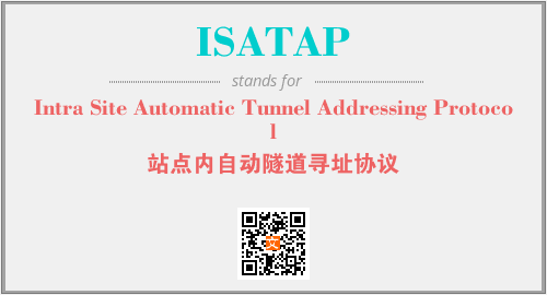 英文缩略词“ISATAP”经常作为“Intra Site Automatic Tunnel Addressing Protocol”的英文缩写来使用,中文表示:“站点内自动隧道寻址协议”。本文将详细介绍英文缩写词ISATAP所代表英文单词,其对应的中文拼音、详细解释以及在英语中的流行度。此外,还有关于缩略词ISATAP的分类、应用领域及相关应用示例等。