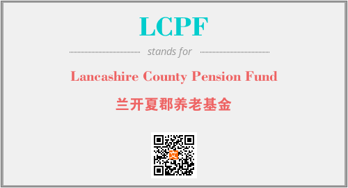 上述内容是“Lancashire County Pension Fund”作为“LCPF”的缩写,解释为“兰开夏郡养老基金”时的信息,以及英文缩略词LCPF所代表的英文单词,其对应的中文拼音、详细解释以及在英文中的流行度和相关分类、应用领域及应用示例等。