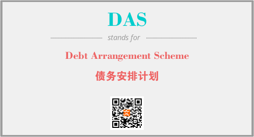 上述内容是“Debt Arrangement Scheme”作为“DAS”的缩写,解释为“债务安排计划”时的信息,以及英文缩略词DAS所代表的英文单词,其对应的中文拼音、详细解释以及在英文中的流行度和相关分类、应用领域及应用示例等。