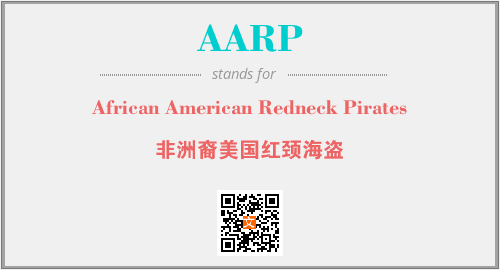 上述内容是“African American Redneck Pirates”作为“AARP”的缩写,解释为“非洲裔美国红颈海盗”时的信息,以及英文缩略词AARP所代表的英文单词,其对应的中文拼音、详细解释以及在英文中的流行度和相关分类、应用领域及应用示例等。