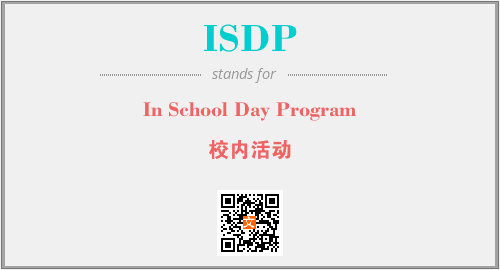 英文缩略词“ISDP”经常作为“In School Day Program”的英文缩写来使用,中文表示:“校内活动”。本文将详细介绍英文缩写词ISDP所代表英文单词,其对应的中文拼音、详细解释以及在英语中的流行度。此外,还有关于缩略词ISDP的分类、应用领域及相关应用示例等。