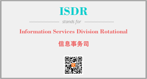 英文缩略词“ISDR”经常作为“Information Services Division Rotational”的英文缩写来使用,中文表示:“信息事务司”。本文将详细介绍英文缩写词ISDR所代表英文单词,其对应的中文拼音、详细解释以及在英语中的流行度。此外,还有关于缩略词ISDR的分类、应用领域及相关应用示例等。