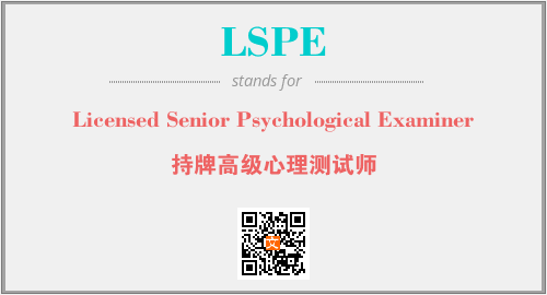 上述内容是“Licensed Senior Psychological Examiner”作为“LSPE”的缩写,解释为“持牌高级心理测试师”时的信息,以及英文缩略词LSPE所代表的英文单词,其对应的中文拼音、详细解释以及在英文中的流行度和相关分类、应用领域及应用示例等。