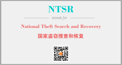 上述内容是“National Theft Search and Recovery”作为“NTSR”的缩写,解释为“国家盗窃搜查和恢复”时的信息,以及英文缩略词NTSR所代表的英文单词,其对应的中文拼音、详细解释以及在英文中的流行度和相关分类、应用领域及应用示例等。