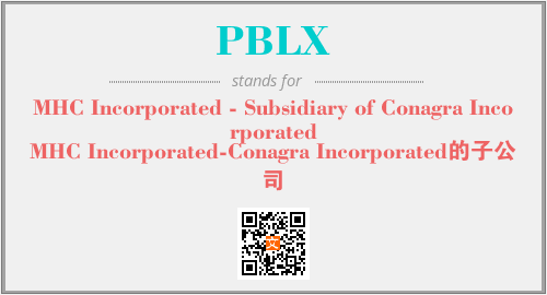 上述内容是“MHC Incorporated - Subsidiary of Conagra Incorporated”作为“PBLX”的缩写,解释为“MHC Incorporated-Conagra Incorporated的子公司”时的信息,以及英文缩略词PBLX所代表的英文单词,其对应的中文拼音、详细解释以及在英文中的流行度和相关分类、应用领域及应用示例等。