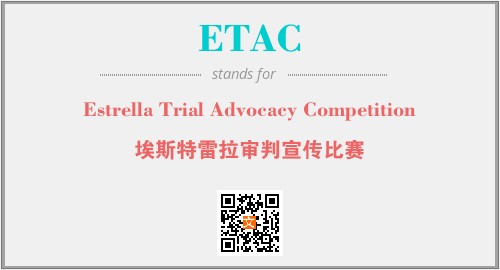 以上为Estrella Trial Advocacy Competition英文缩略词ETAC的中文解释,以及该英文缩写在英语的流行度、分类和应用领域方面的信息。