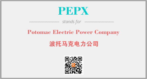 上述内容是“Potomac Electric Power Company”作为“PEPX”的缩写,解释为“波托马克电力公司”时的信息,以及英文缩略词PEPX所代表的英文单词,其对应的中文拼音、详细解释以及在英文中的流行度和相关分类、应用领域及应用示例等。