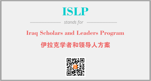 上述内容是“Iraq Scholars and Leaders Program”作为“ISLP”的缩写,解释为“伊拉克学者和领导人方案”时的信息,以及英文缩略词ISLP所代表的英文单词,其对应的中文拼音、详细解释以及在英文中的流行度和相关分类、应用领域及应用示例等。