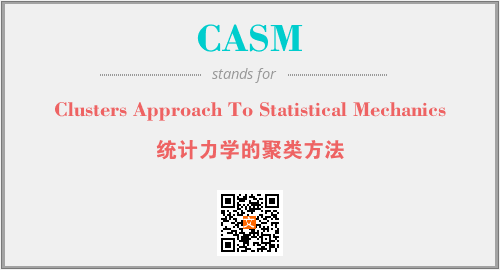 上述内容是“Clusters Approach To Statistical Mechanics”作为“CASM”的缩写,解释为“统计力学的聚类方法”时的信息,以及英文缩略词CASM所代表的英文单词,其对应的中文拼音、详细解释以及在英文中的流行度和相关分类、应用领域及应用示例等。
