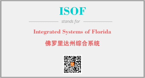 上述内容是“Integrated Systems of Florida”作为“ISOF”的缩写,解释为“佛罗里达州综合系统”时的信息,以及英文缩略词ISOF所代表的英文单词,其对应的中文拼音、详细解释以及在英文中的流行度和相关分类、应用领域及应用示例等。
