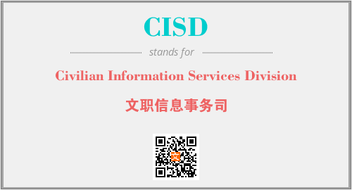 英文缩略词“CISD”经常作为“Civilian Information Services Division”的英文缩写来使用,中文表示:“文职信息事务司”。本文将详细介绍英文缩写词CISD所代表英文单词,其对应的中文拼音、详细解释以及在英语中的流行度。此外,还有关于缩略词CISD的分类、应用领域及相关应用示例等。